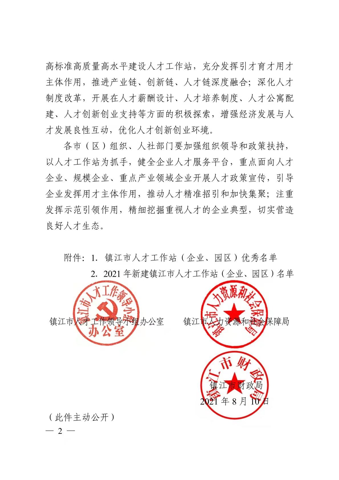 8月10日,镇江市人才工作领导小组办公室 、镇江市人力资源和社会保障局、镇江市财政局联合发文(镇人才办〔2021〕11 号)公布优秀镇江市人才工作站名单。中欧电竞在评选中脱颖而出,荣获“2020年度优秀镇江市人才工作站”称号。